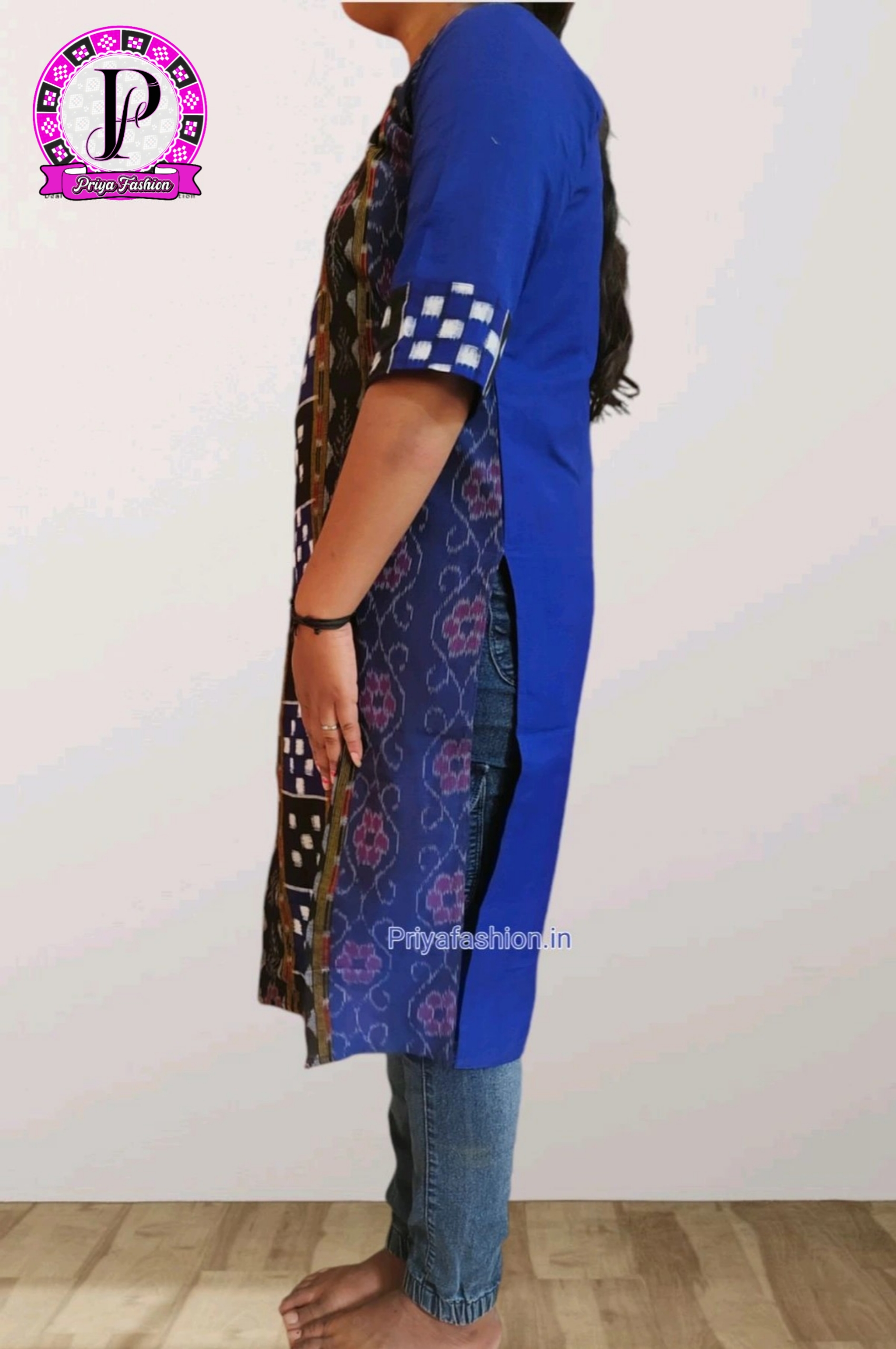 An amazing range of women kurti in soft and solid colors that looks perfect for regular wear. With beautiful designs and patterns. These apparels are very stylish and comfortable too. Get rid of the 'regular' look this season wearing Suit Set by Priya Fashion. With a perfect blend of comfort and traditional style, This Sambalpuri Cotton Kurti From Priya Fashion embellished with Buttons.Stiching from Priya  Boutique...