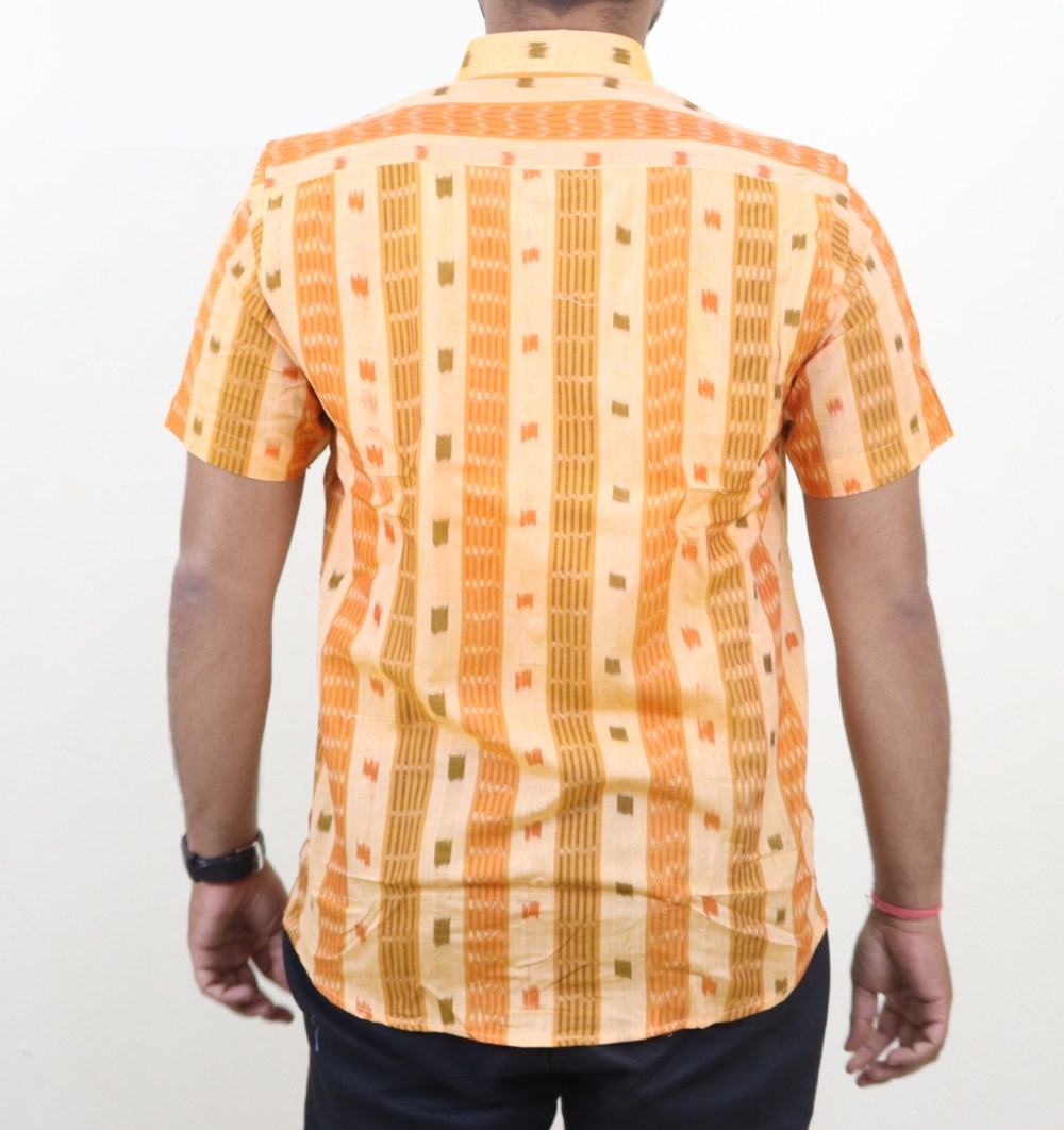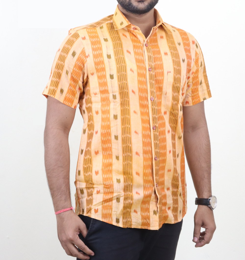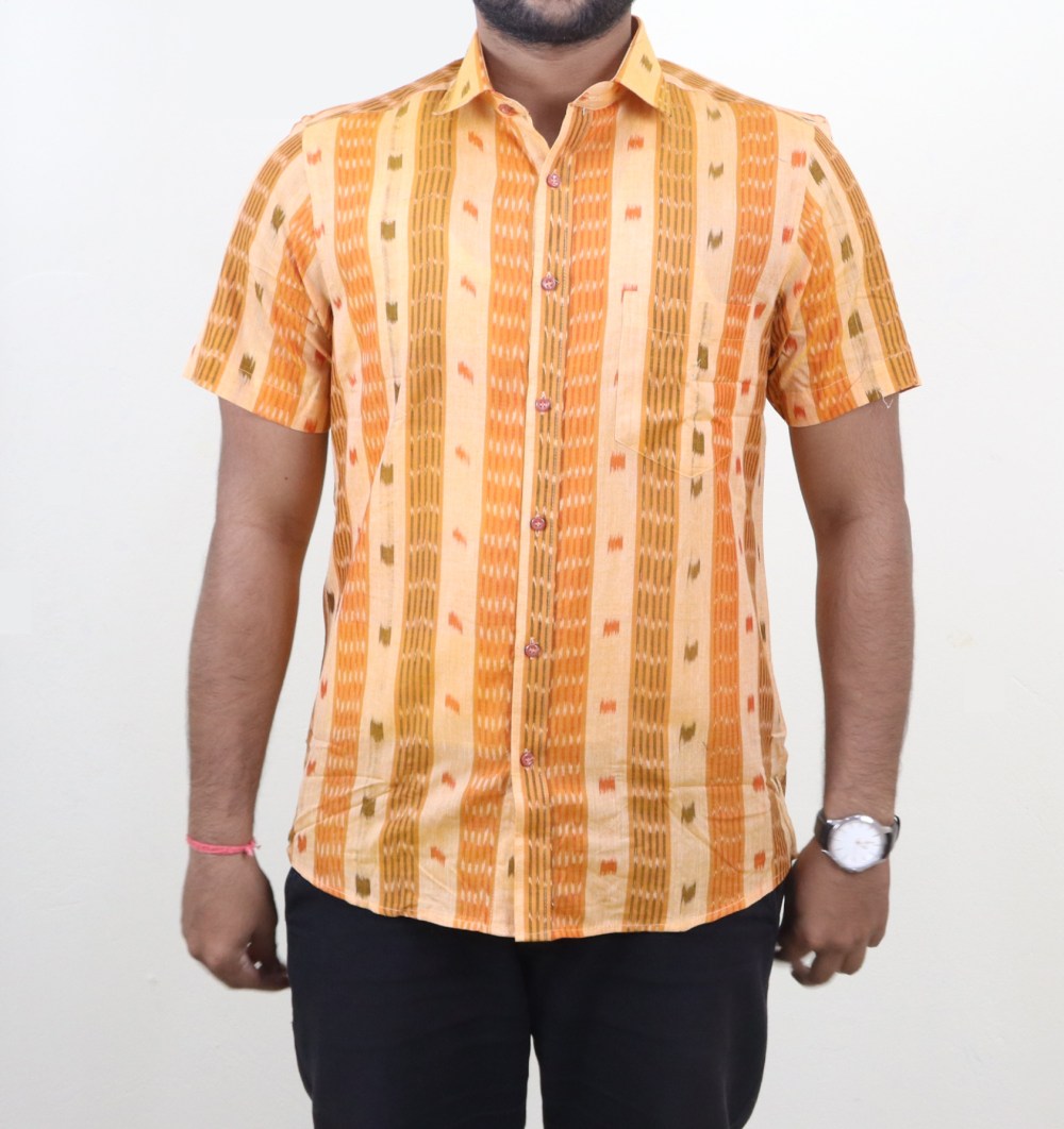 With bold ikat patterns and vibrant colors, our Sambalpuri half shirts bring an authentic touch to modern casual wear. Handwoven in breathable cotton, these shirts offer all-day comfort, making them ideal for warm weather or casual outings. Pair them with jeans or traditional trousers for a stylish, effortless look that blends tradition with contemporary flair..